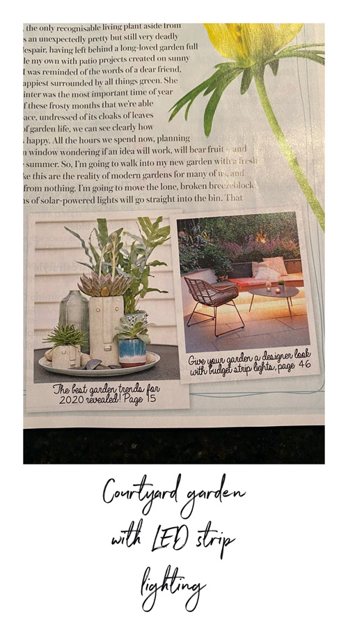 See our Kings Hill Garden featured in national magazine 'Modern Gardens' an article talking about LED strip lighting, here we designed the lighting to sit in a hidden channel within the bench and cast light on the front of bench and terrace. This extends the use of the garden into the evening and creates ambience. Our clients love their garden.